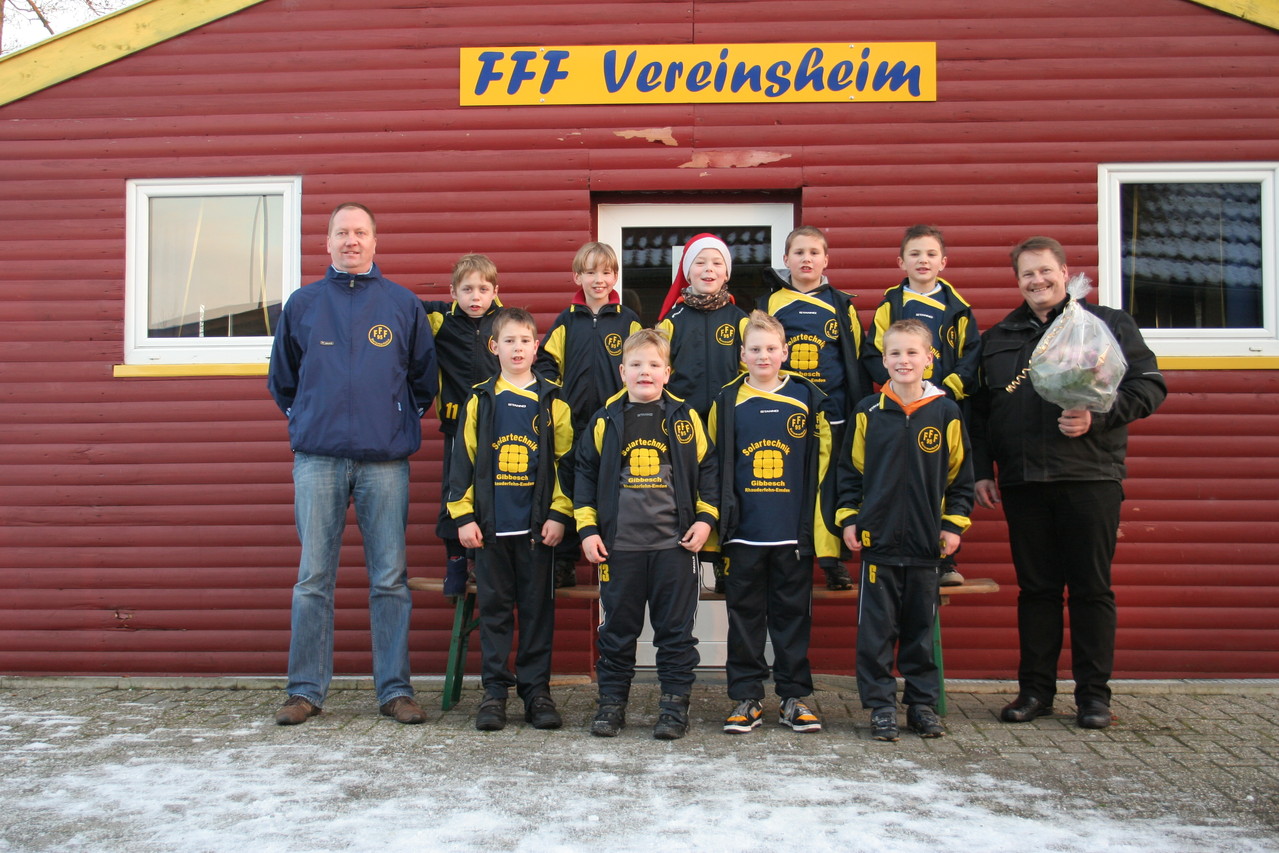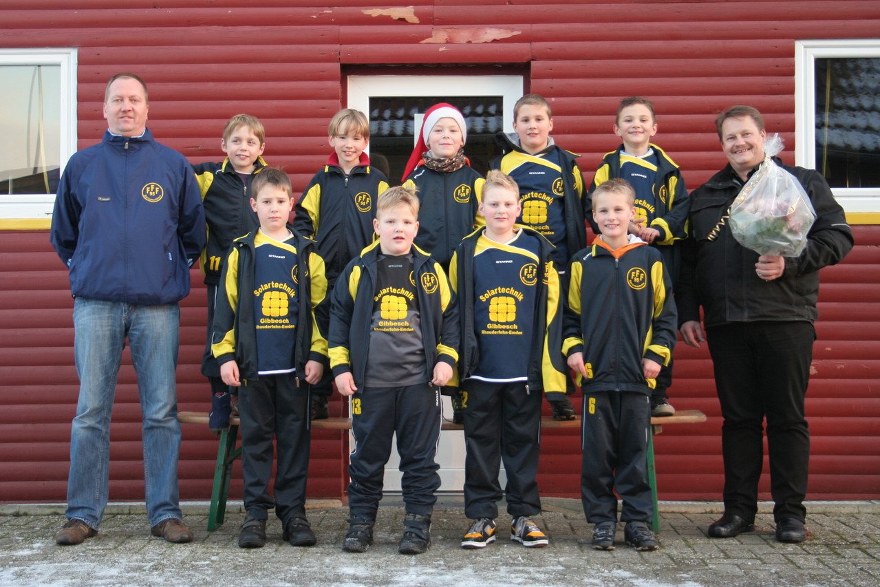 Stehend von links: Trainer und Betreuer Johann Behrends, Simon Behrends, Tim Rüssmann, Julian Garrelts, Janek Harms, Tido Wiebersiek, Jannik Garrelts, Simon Janßen;